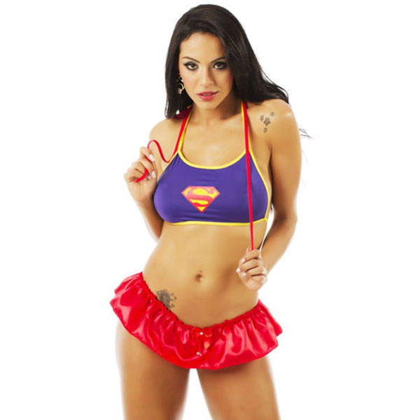 Mini Fantasia Super Girl Pimenta Sexy, confeccionada em tecido sintético.